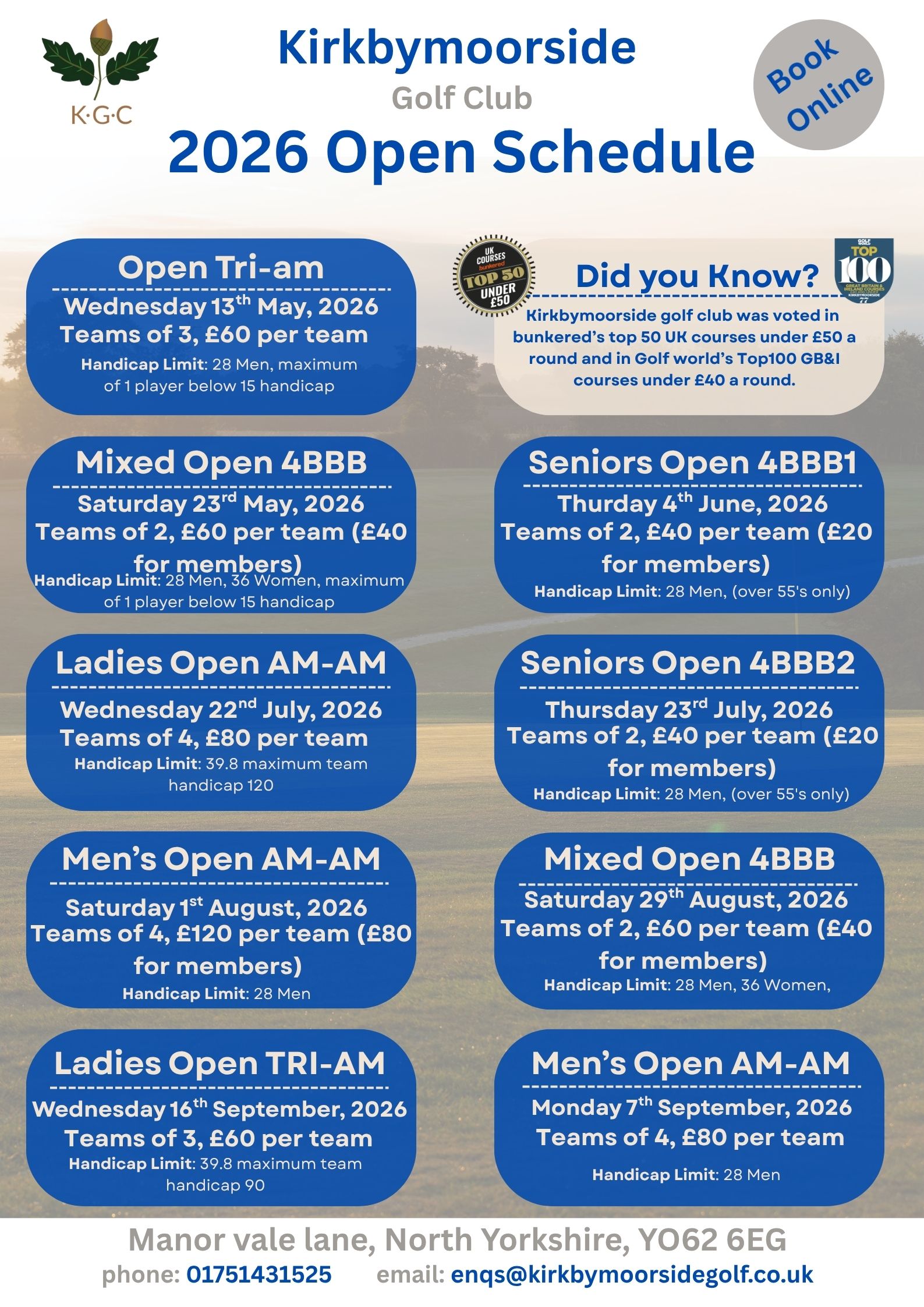 Click here to book Open Competitions online